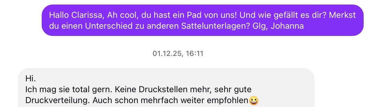 Nein, sehr rundrückige, massive Pferde mit viel Rückenmuskulatur brauchen es definitiv nicht. Die Erfahrung in der Praxis zeigt aber auch bei diesen Pferden positive Effekte – und schick ist das Pad natürlich in jedem Fall.