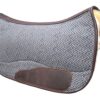 mit Lammfell und Einlagen aus Memoryfoam in Korrekturtaschen, die durch ihre stark stoßdämpfende Wirkung Druckspitzen in der Sattellage verringert, Atrophien ausgleichen lässt, die Druckverteilung des Reitergewichts optimiert und so den Rückenmuskelaufbau beim Pferd fördert.