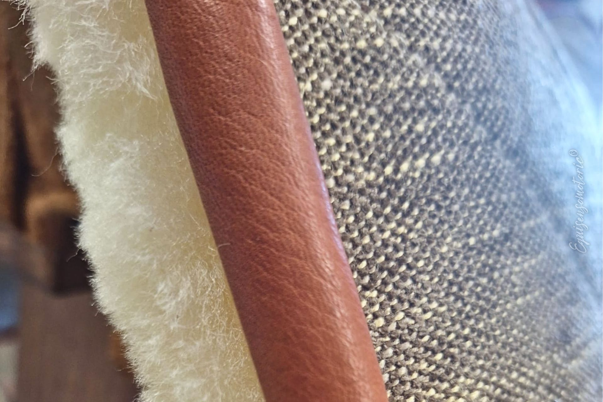 mit Lammfell und Einlagen aus Memoryfoam in Korrekturtaschen, die durch ihre stark stoßdämpfende Wirkung Druckspitzen in der Sattellage verringert, Atrophien ausgleichen lässt, die Druckverteilung des Reitergewichts optimiert und so den Rückenmuskelaufbau beim Pferd fördert.