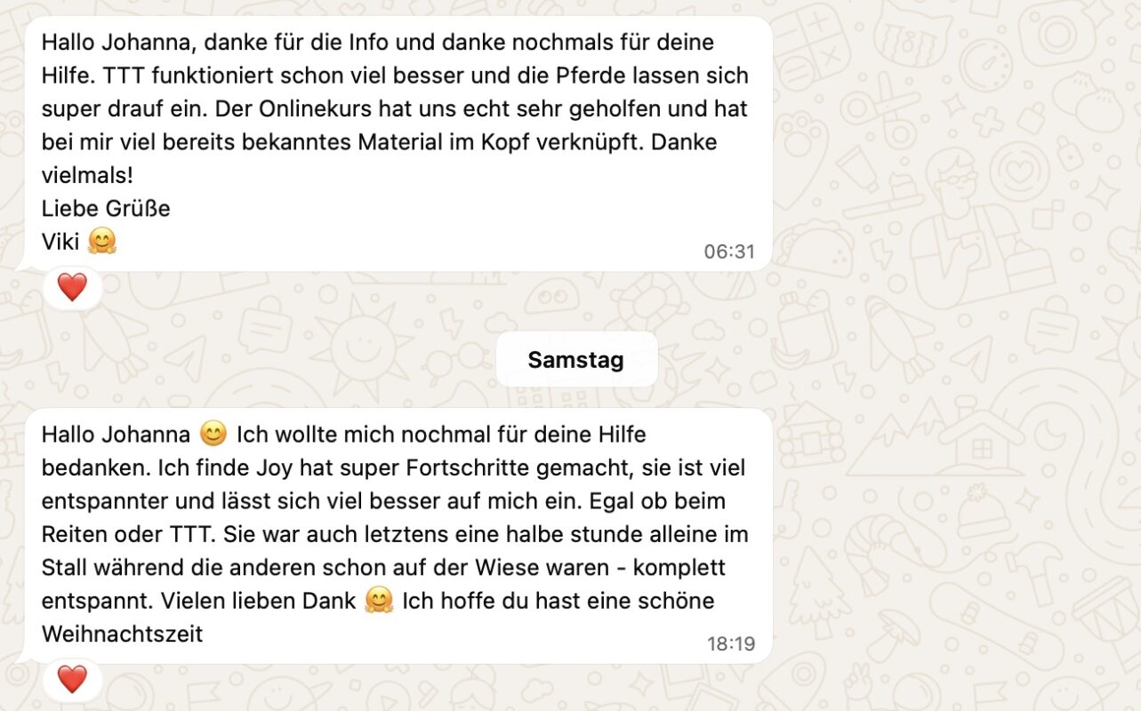 Dir und deinen Pferden eine maximal entspannte Zeit und wenn dir der Kurs gefallen hat, freue ich mich sehr, wenn du ihn an andere PferdebesitzerInnen weiterempfiehlst ♡